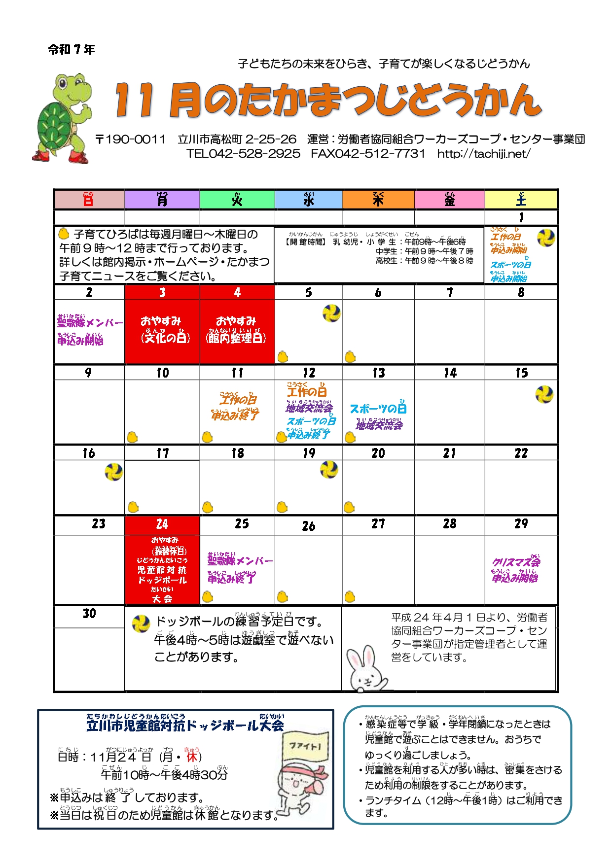 東京都立川市の児童館のうち、ワーカーズコープが運営する児童館7館のサイトです。