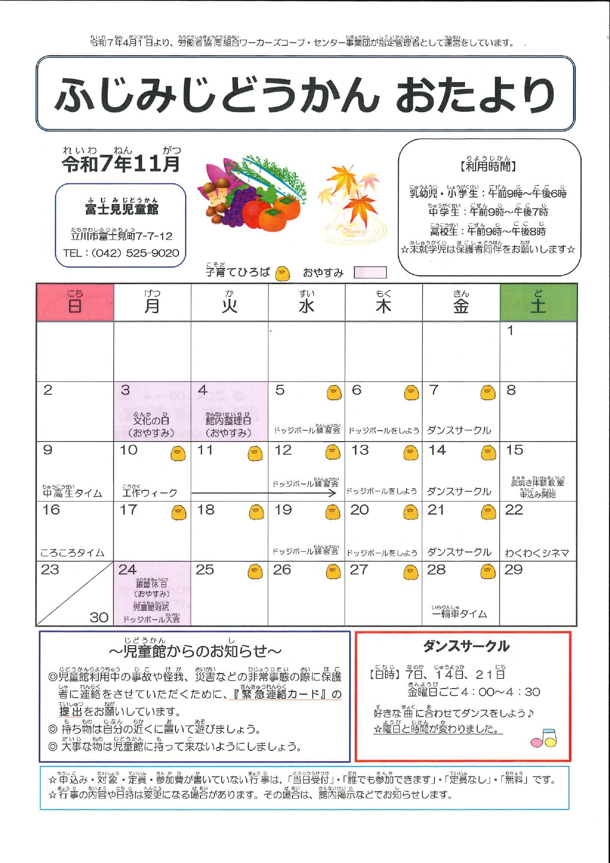 2025年11月 富士見児童館おたより