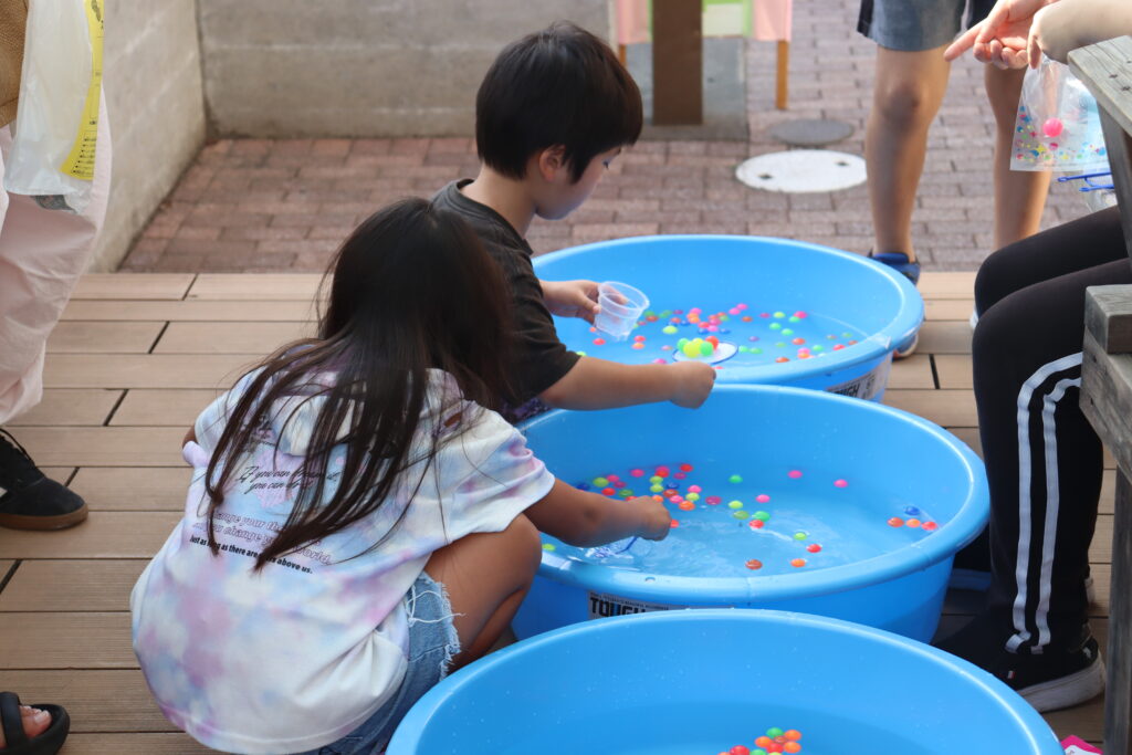 外では、ヨーヨー釣り。好きな色のヨーヨーを釣れたかな。