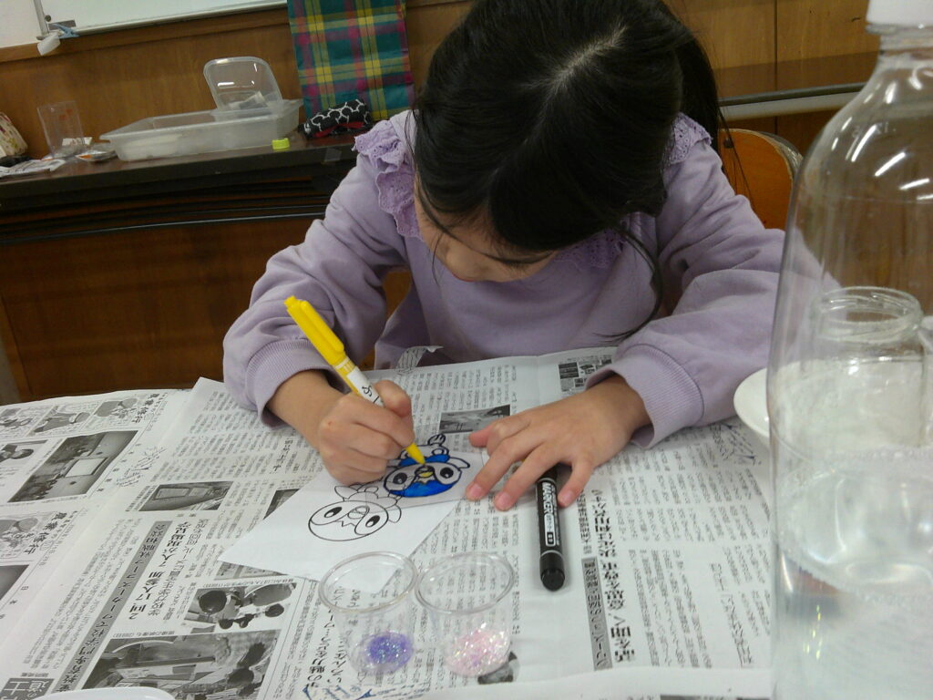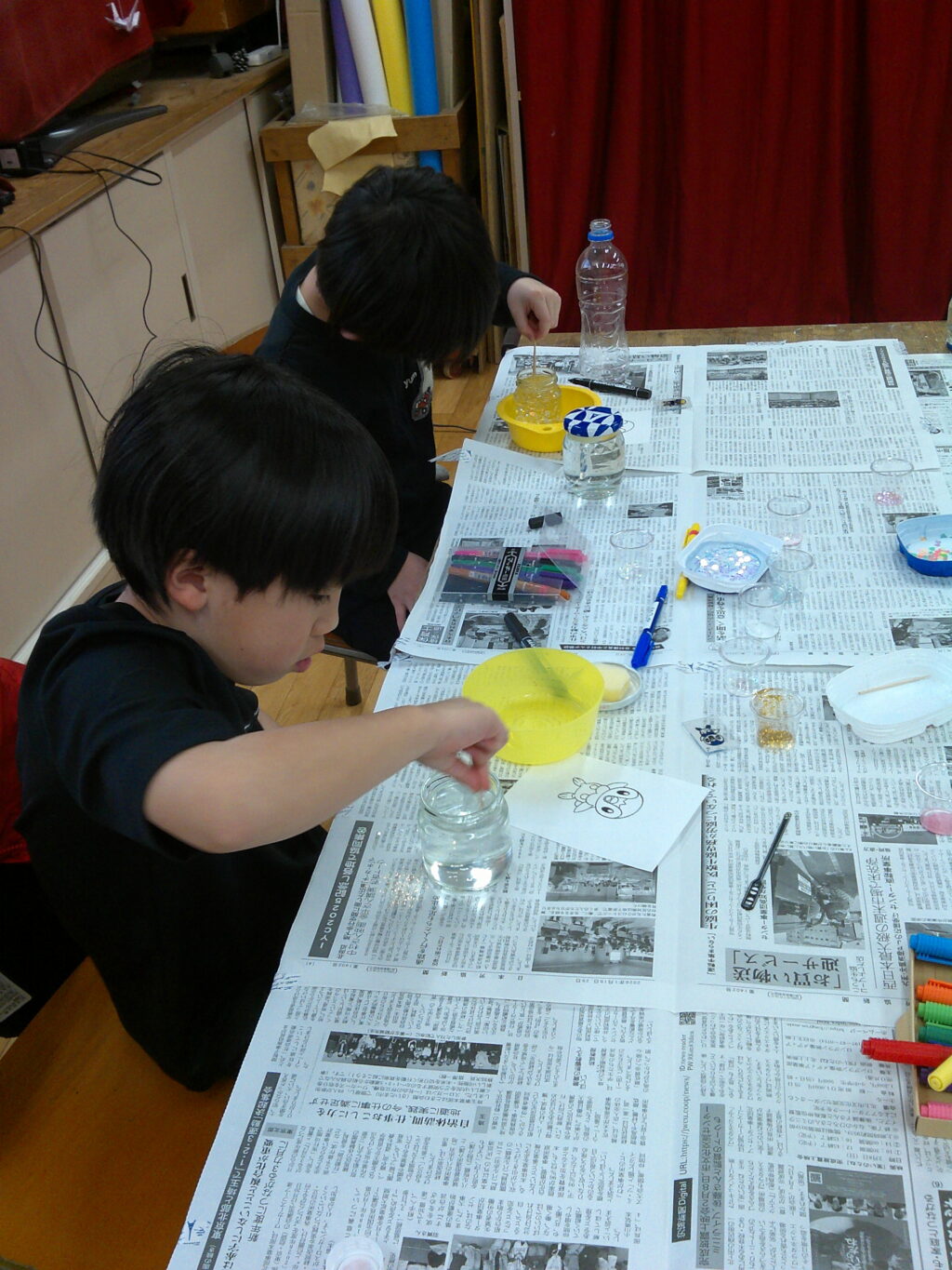 きんのラメでキラキラにする子や、プラバンにいたキャラクターにわせてスパンコールをえらなど、みんなの個性豊こせいゆたかな作品さくひん完成かんせいしました⭐