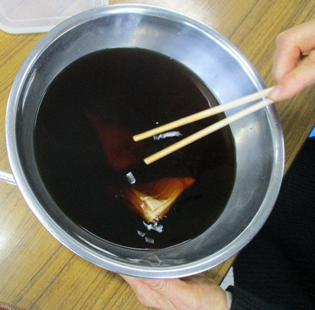 こした後の染液に布を入れてゆらゆら~