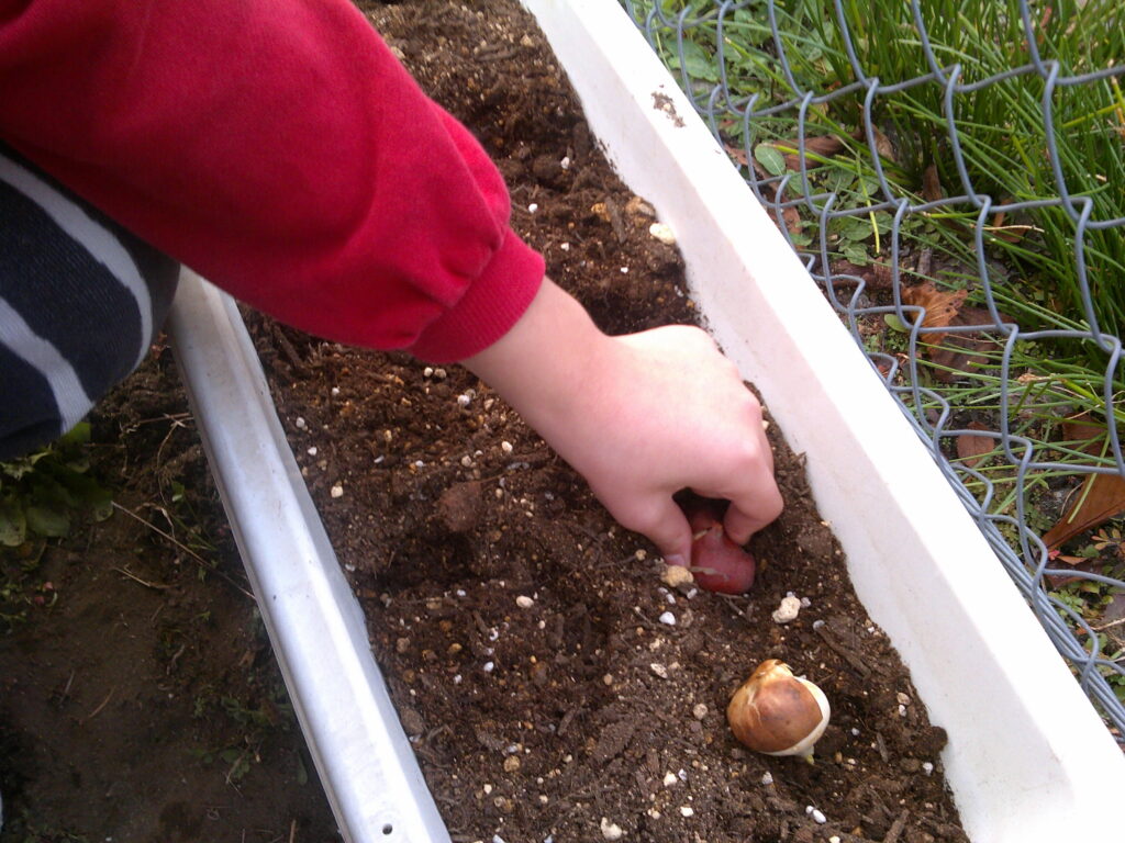 12がつどもたちが館庭かんていチューリップ球根きゅうこんえてくれました🌷
