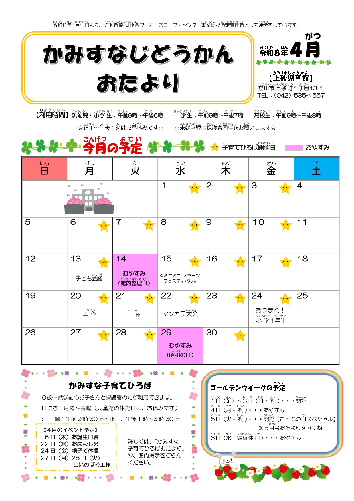 2026年4月 上砂児童館おたより
