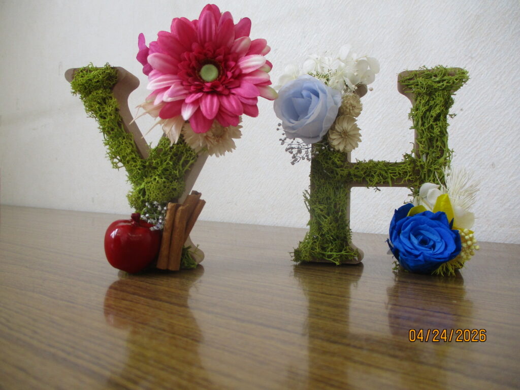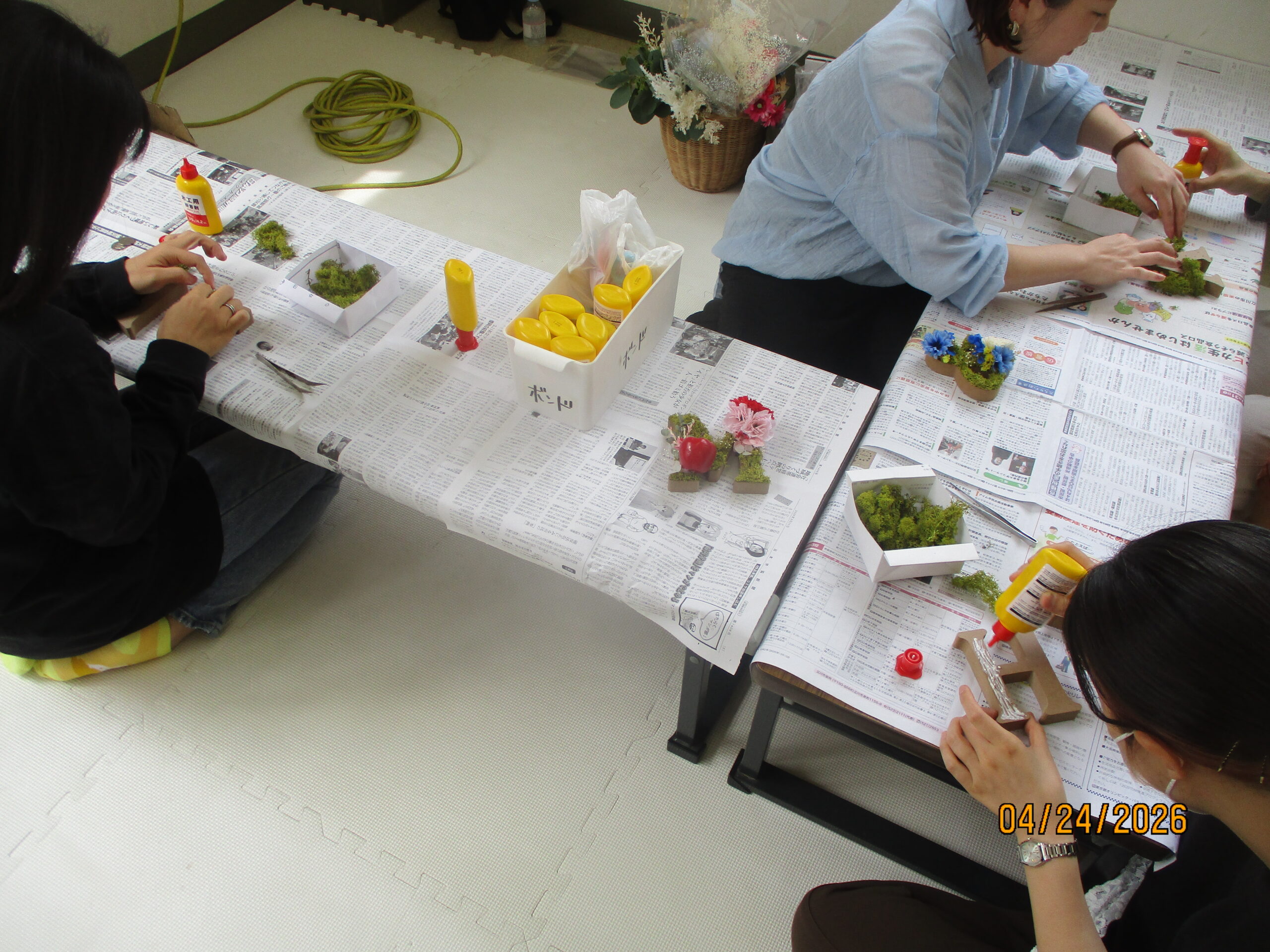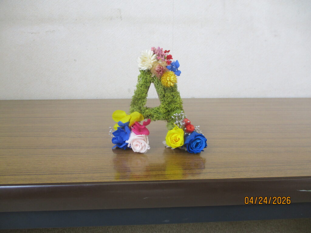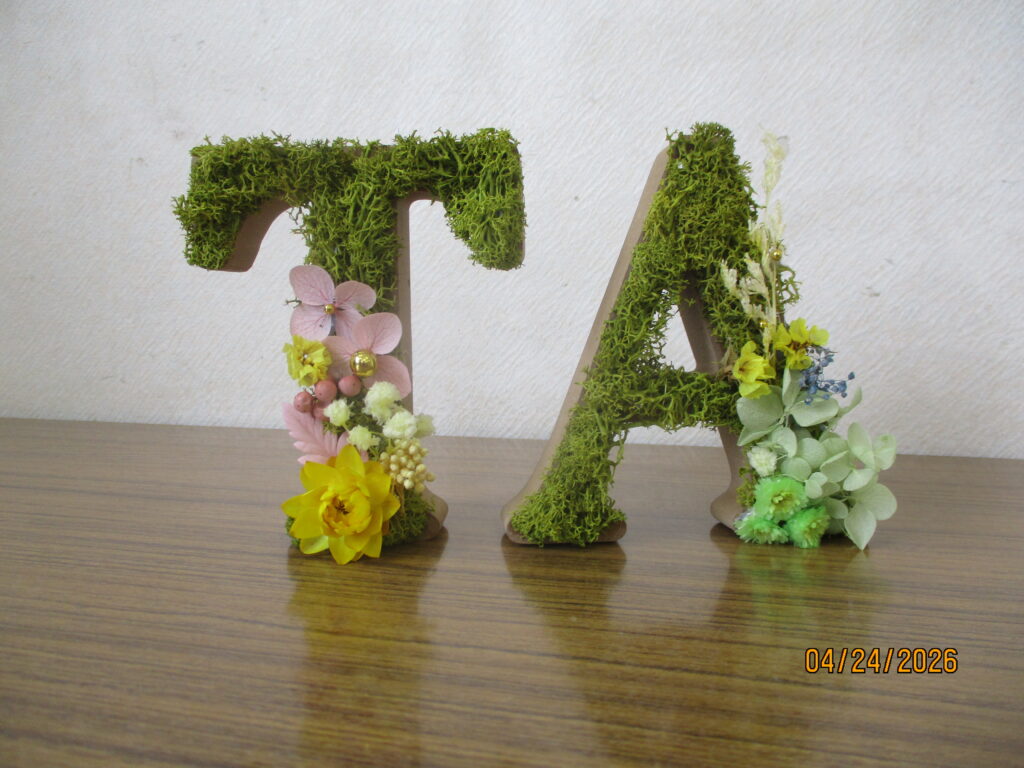 イニシャルフラワー作りました 2026.04.24 ひろばの講座でイニシャルフラワーを先生に教わりながら作りました! 希望したアルファベットにお花などをつけて、素敵な作品が完成しました🌷 参加したママたちは、笑顔でおしゃべりしながら作ってました♪