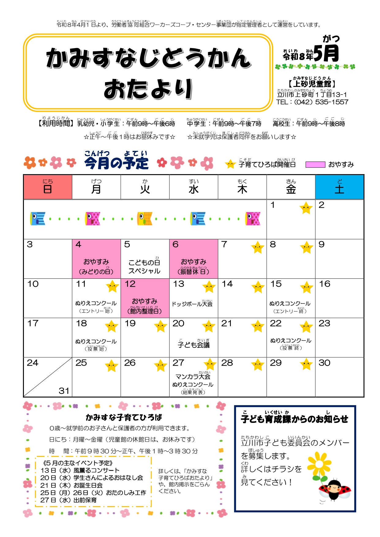 東京都立川市の児童館のうち、ワーカーズコープが運営する児童館8館のサイトです。