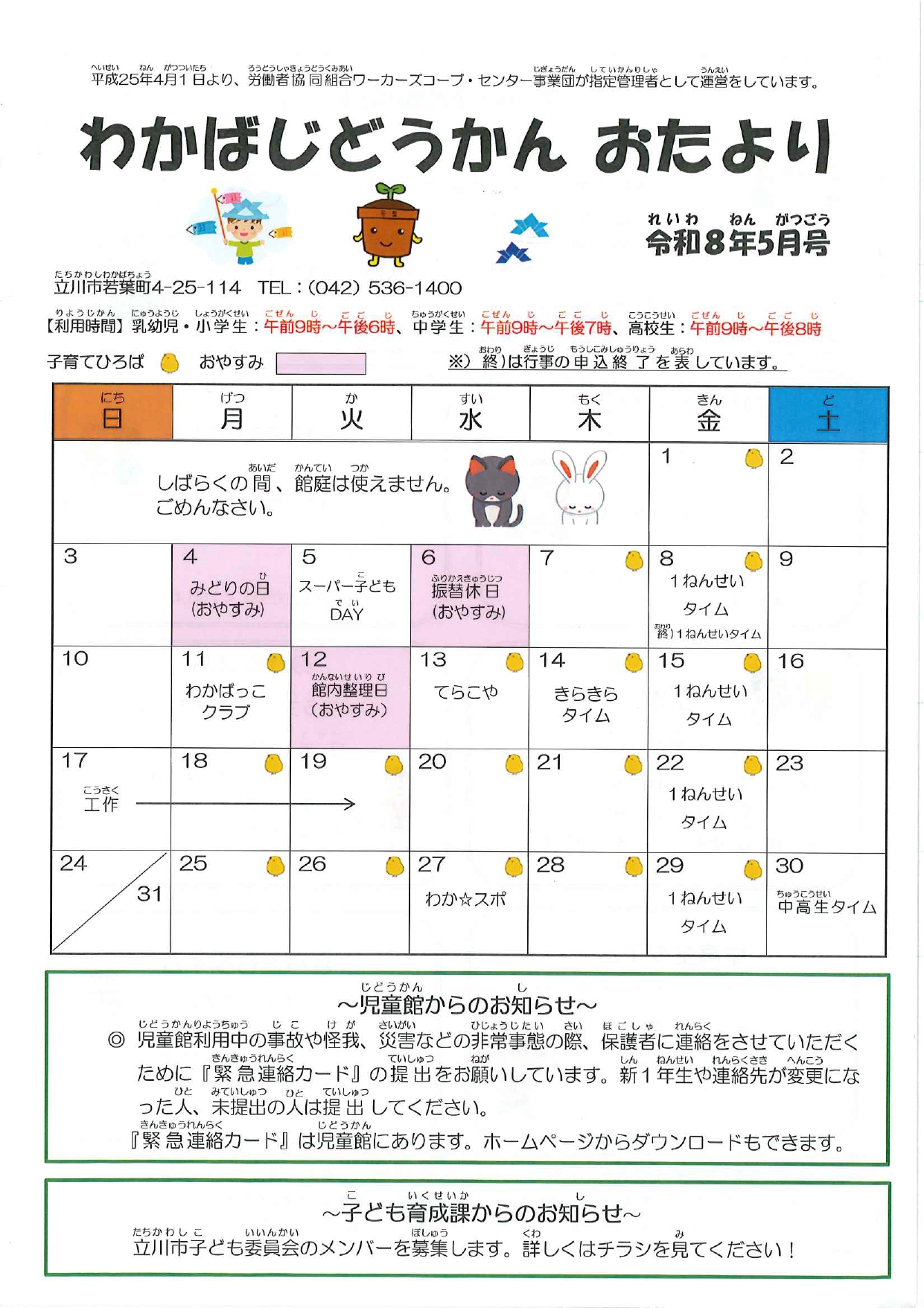 東京都立川市の児童館のうち、ワーカーズコープが運営する児童館8館のサイトです。