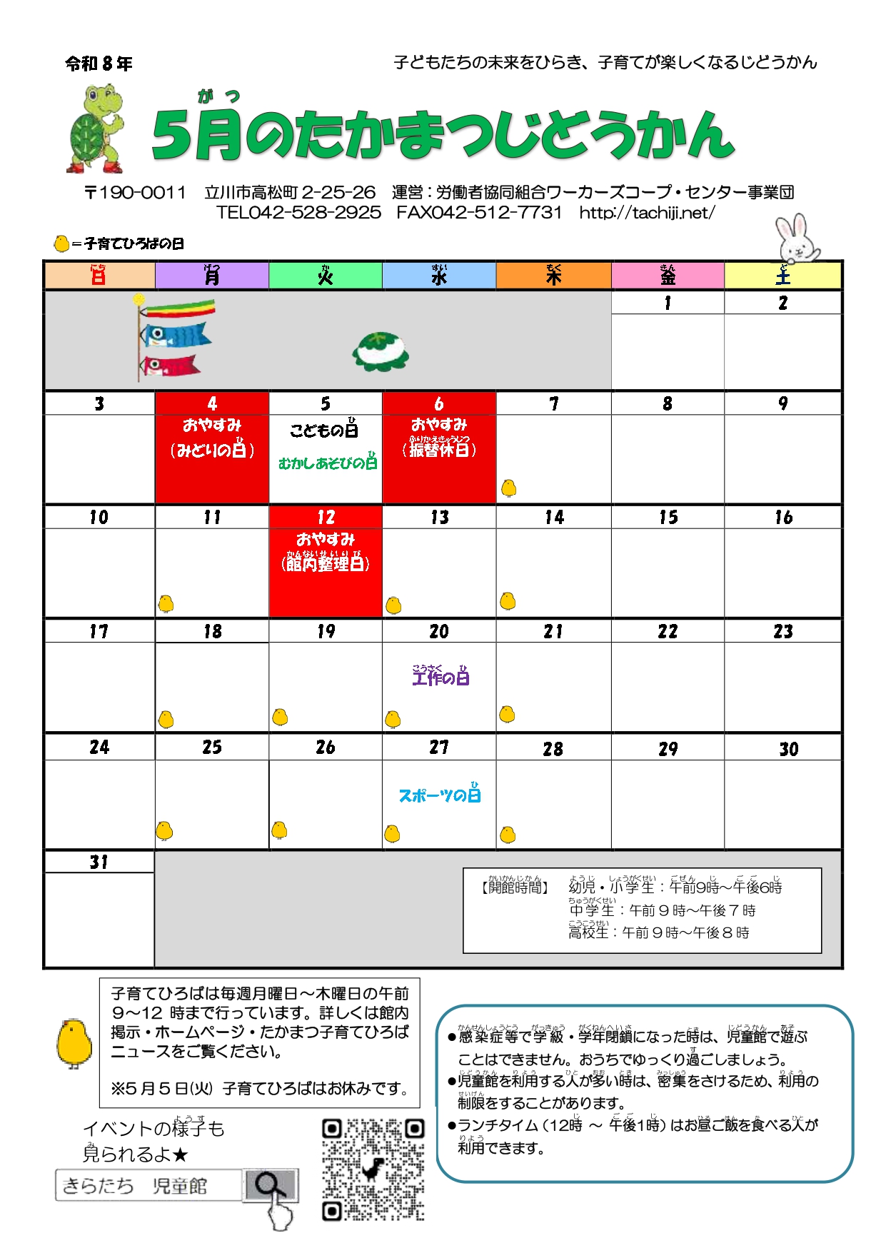 東京都立川市の児童館のうち、ワーカーズコープが運営する児童館8館のサイトです。