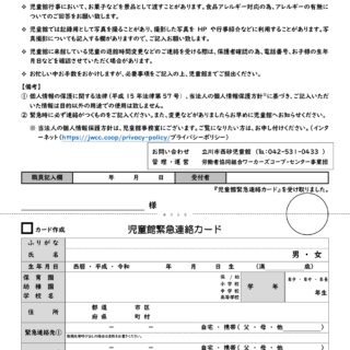 令和8年度 児童館緊急連絡カード提出のお願い
